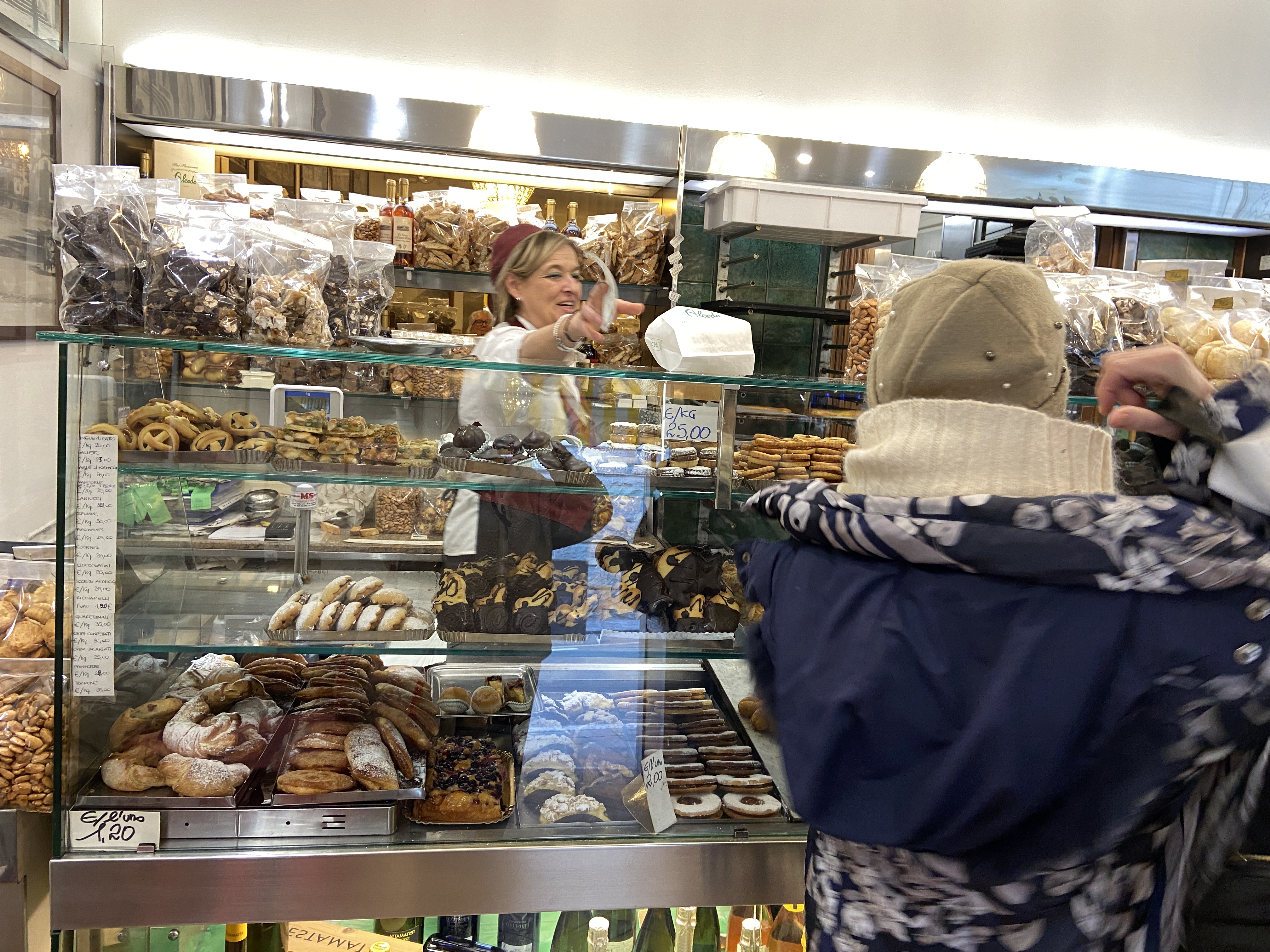 It is cold here this morning and I am missing the sea!!!! Took a walk yesterday through the high winding streets of this town and came to a part of the road whose view was as expansive as the sea! It was early morning and spread out beneath was all of Florence – I could see the Duomo! The sun was just rising and the clouds were touched with pinks and oranges! I didnt have my camera so words will have to do, capturing a moment in time! I then walked through the town stopping to buy lemons and artichokes and then to a patisserie where I succumbed and brought home an almond cake, a cream filled piece of Cake covered with fresh fruit and…a ‘cookie’ – it was a shortbread cookie with a mound of marzipan on top, rolled in pistachios and topped with a dollop of raspberries jam! Yum!!!!!!!!