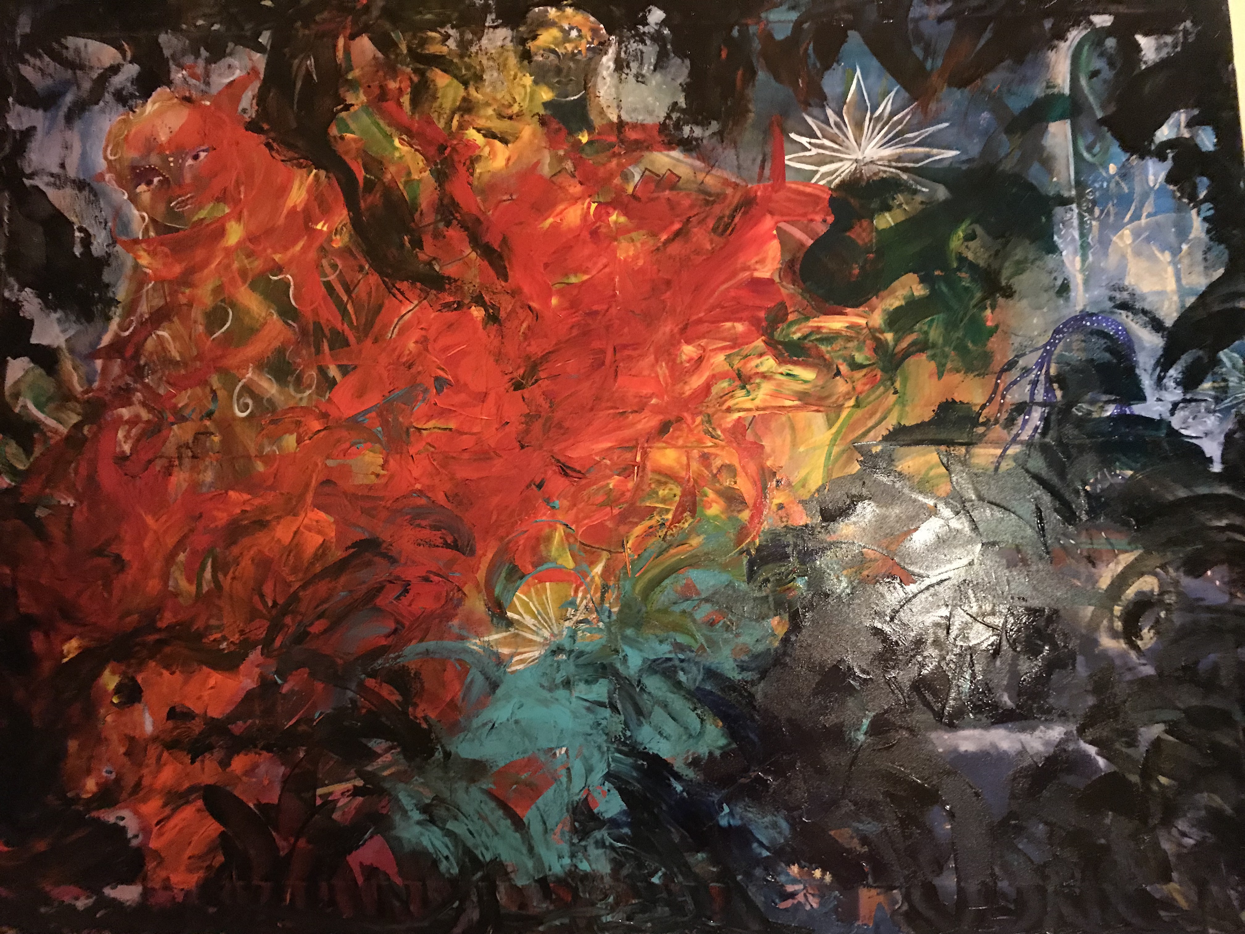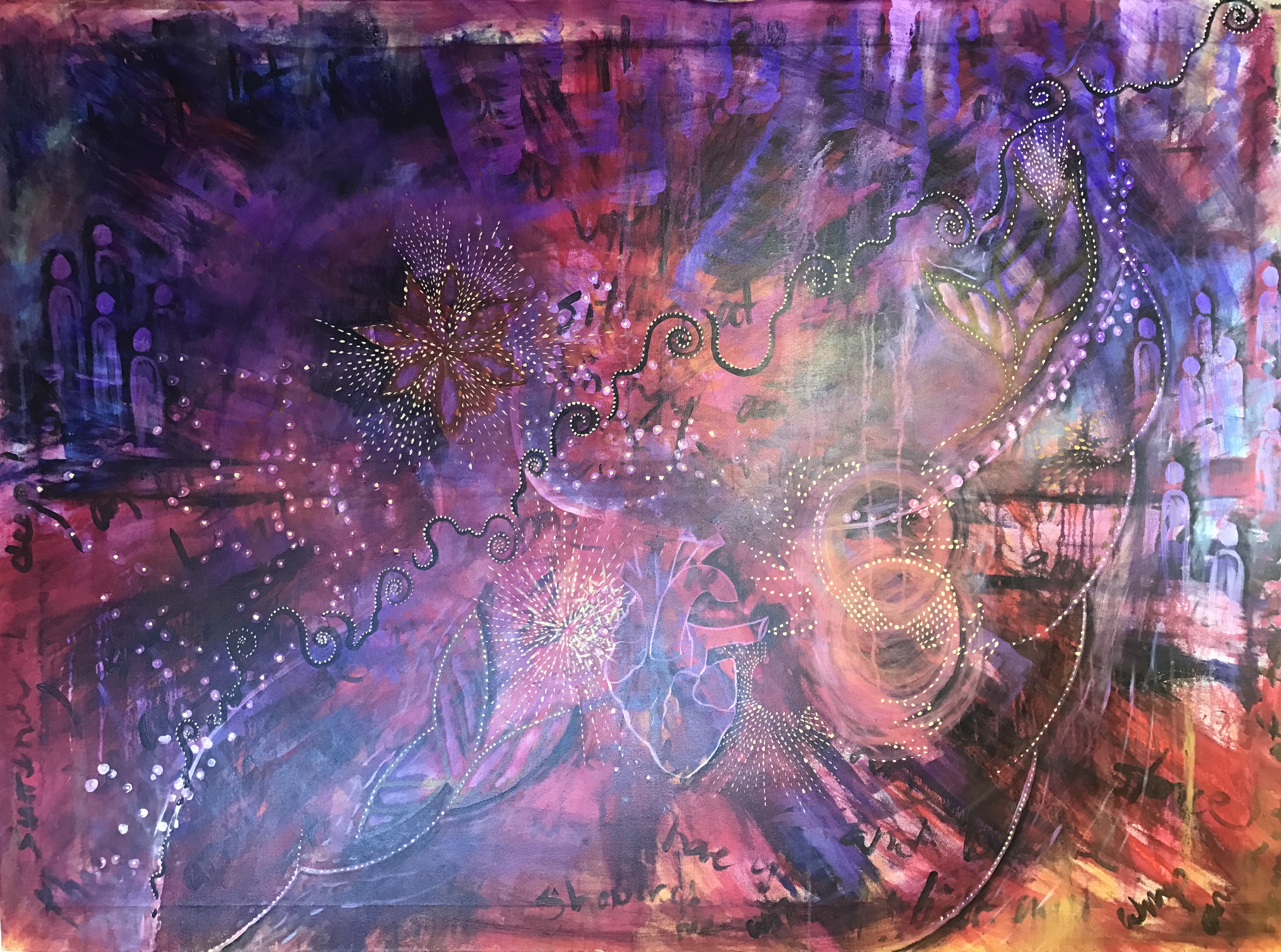 Cosmic Pilgrim on the Trail of Tears August, 2017 44X60, acrylic on canvas