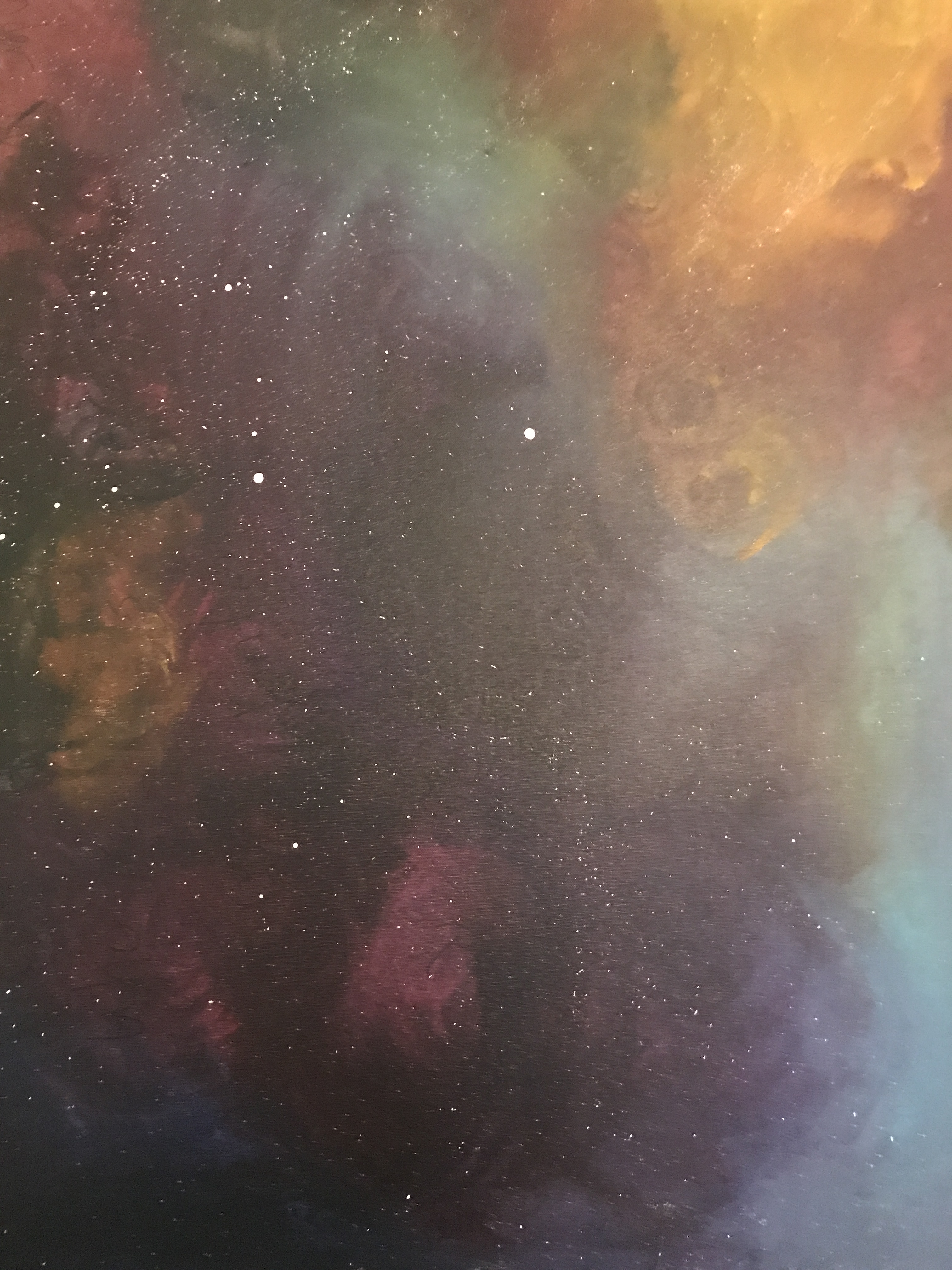 We Are Made of Stardust. September, 2017. 30X40, acrylic on canvasFire In the Mountain. November, 2018. 30X40, acrylic on canvasAscension. November, 2018. 24X30, acrylic on canvasRaining Stardust. September, 2017. 30X40, acrylic on canvasLightening Forest. December, 2017. 24X30, acrylic on canvasEssentially Wild Magic. 11X14, acrylic on canvas. commissioned work, March, 2019Infinite Possibility. 16X20, acrylic on canvas. May, 2019 (rescued during the 2019 fires and sold) Ascend Awake. 11X14, acrylic on canvas. January, 2019
